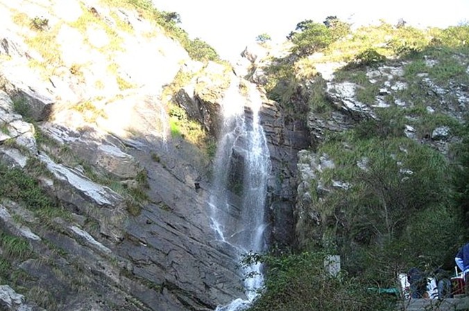 由天池寺遺址前循石級(jí)小道而下,行數(shù)百級(jí),即可到龍首崖。形似兩塊巨石,一塊直立,深不見(jiàn)底,一塊臥其上,直插天池山腰。上覆勁松,下臨絕壑,似蒼龍昂首,故名。立崖俯視,萬(wàn)丈深谷,只見(jiàn)松濤澎湃,澗中怒流湍急,勢(shì)如萬(wàn)馬奔騰,望此“奇絕”,莫不魂飛魄散,心悸目眩,久久不能平息。但也有相反者。相傳明代王陽(yáng)明,曾瞻顧左右,躬身徐步直至崖端,俯視絕澗,繼而轉(zhuǎn)身返回,依然心地平靜,成為千古佳話(huà)。
