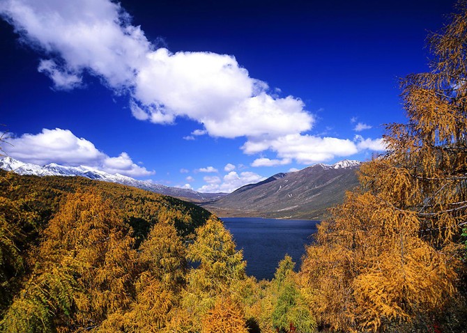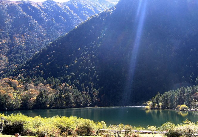 野人海——中國情海木格措漢名野人海,又名大海子,是川西北最大的高山湖泊之一。水域面積近4平方公里,水深逾70米,海拔3700米。因水源大部分來自身后女媧雪山的融化積雪水,因而能見度很高,一般為6-10米左右。木格措四周被群山、森林、草原環(huán)抱,紅海、黑海、白海等幾十個(gè)個(gè)小海子圍繞著她,猶如眾星捧月。木格措出海口左面的山峰名犀牛峰,月明星稀的夜晚,如水的月光潑灑在山峰上,那柄朝天的犀牛角會(huì)發(fā)出銀色的寒光。木格措出海口右面山上有“臥虎觀月”的景觀,真如一只臥虎望著天上,虎視眈眈地乜著犀牛峰。