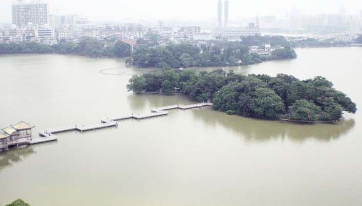 君山在岳陽市西南15公里的洞庭湖中,是一座面積不足100公頃的小島。原名洞府山,取意神仙“洞府之庭”。傳說這座“洞庭山浮于水上,其下有金堂數百間,玉女居之,四時聞金石絲竹之聲,徹于山頂”。后因舜帝的兩個妃子娥皇、女英葬于此,屈原在《九歌》中稱之為湘君和湘夫人,故后人將此山改名為君山。