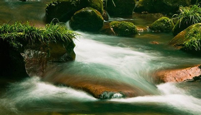 9、紫草潭:位于金鞭溪中游。原名紙草潭,因清代山民造土紙?jiān)诖似鞫L秾?米,長(zhǎng) 15 米,深2米。上連一石潭。潭底皆紫紅色巖石,潭上端溪流湍急,跌宕有聲,水花如滾珠瀉玉。潭內(nèi)水面平靜,清澈見(jiàn)底,魚(yú)蝦悠游其中。 游魚(yú)細(xì)石,直視無(wú)礙,夾岸林林蒼翠,石峰屏列。潭邊巨石橫臥,光潔如玉。