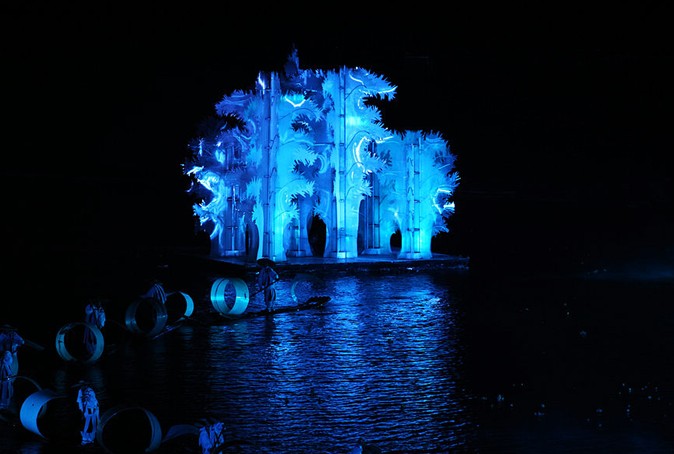 方圓兩公里的陽朔書童山段漓江水域,十二座背景山峰,廣袤無際的天穹,構成迄今世界上最大的山水劇場。投資建造的目前國內最大規模的環境藝術燈光工程及獨特的煙霧效果工程,創造出如詩如夢的視覺效果。傳統演出是在劇院有限的空間里進行,這場演出則以自然造化為實景舞臺,放眼望去,版權所有山東聊城聊之旅國際旅行社有限公司,轉載必究!漓江的水,桂林的山,化為中心的舞臺,給人寬廣的視野和超然的感受。傳統的舞臺演出,是人的創作,而"山水實景演出"是人與上帝共同的創作。山峰的隱現、水鏡的倒影、煙雨的點綴、竹林的輕吟、月光的披灑隨時都會進入演出,成為美妙的插曲。晴天的漓江,清風倒影特別迷人;可煙雨漓江,賜給人們的卻是另外一種美的享受;細雨如紗,飄飄瀝瀝;云霧繚繞,似在仙宮,如入夢境……演出正是利用晴、煙、雨、霧、春、夏、秋、冬不同的自然氣候,創造出無窮的神奇魅力,使那里的演出每場都是新的。
