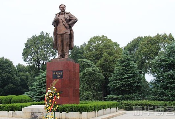 由中國(guó)美術(shù)館館長(zhǎng)、著名雕塑家劉開渠及中國(guó)軍事博物館雕塑家程允賢設(shè)計(jì)的劉少奇銅像建于紀(jì)念館西南約200米的山包上,為站立式全身像,底座高3.1米,像高4米,總高7.1米,上鐫陳云題詞:“向堅(jiān)定的共產(chǎn)主義戰(zhàn)士劉少奇同志學(xué)習(xí)”。