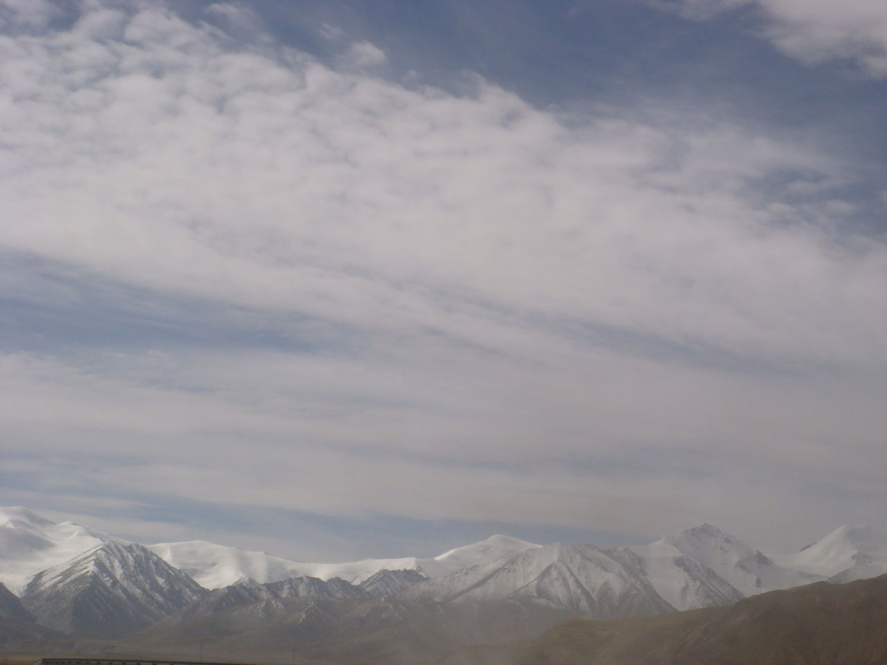 山峰頂部常年被冰雪所覆蓋,無巖石表露。冰雪坡較平緩。粒雪盆以下冰川,由于每年氣溫高,融化快,降水少,消融大于累積,屬消退型大陸冰川。冰川上雖有裂縫,但少有破碎冰崩地區。粒雪盆則平緩而寬闊,冰雪坡下未曾發現有崩塌而下的堆積物與痕跡。山口兩側的冰雪山峰較為集中,各峰頂均呈白色,有積雪,坡下與冰川上則呈灰褐色,均明顯呈現出條條裂縫。
