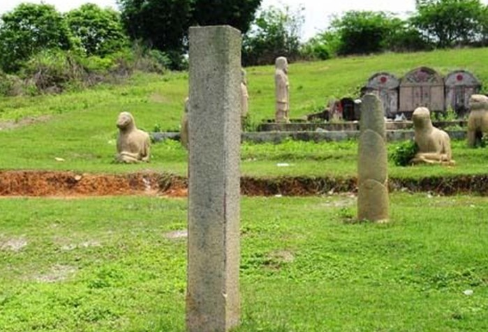 王大寶墓位于潮安縣歸湖鎮神前村的神前山,其地俗稱沉江月,占地約4畝,筑于宋乾道六年(1170)。墓地向西,墓碑高約2.3米,楷書陰刻“宋禮部尚書大寶王公墓”。墓前排列著南宋大型石雕群,計文武翁仲、石獅、石羊、石筍、石望柱、石馬等14件,石雕線條粗擴,工藝簡練古樸,反映了南宋的雕刻藝術水平和風格,是廣東省現存為數不多的大型宋代石雕。1989年王大寶墓被列為廣東省重點文物保護單位。