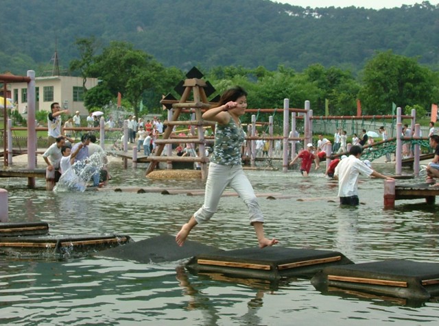 從笑翻天大門往前走50米,再左拐20米便可以看到笑翻天樂園,這里是水上玩點和陸地玩點的聚集地,在這里有花樣繁多的項目:踏籠飛渡、百尺竿頭、孤島求生、飛躍激流、水上鋼絲、踏水無痕、情侶橋……讓你盡情的在挑戰和驚險中突破自我。此外,軍體平衡木、高空電網讓你體驗軍隊生活的快樂。畢業墻讓大家一起來翻越過去,一起畢業。這里還有兒童游玩區,帶孩子的家長可千萬不要錯過,讓我們一起和家人闖關吧。