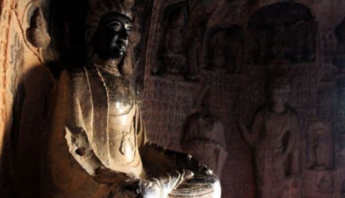 又稱萬佛寺、石空寺、千佛洞等。位于延安市黃陵縣西四十公里處的雙龍鎮(zhèn)峪村西,石窟開鑿于半山石崖間。此窟窟檐為陜西石窟中保留完好的原物,是研究宋代建筑的珍貴資料。石窟平面呈“凸”形,坐西向東,窟口為方形,寬2.4米,深2.6米,有佛像60余尊。窟口左右有佛龕各一個,以二園柱與洞口隔成三間,成檐廊。上有二層斗拱。這是宋代的仿建筑雕鑿,極為壯麗、精巧。中間是入口,走廊兩壁浮雕觀音菩薩像。石窟內高5.3米,寬9.3米,深12米。正中為佛龕,高3.38米,寬5.9米,深4.73米,內有大佛坐像12尊。中央坐釋迦牟尼,兩邊站立文殊、普賢二菩薩和迦葉、阿難兩弟子。窟項正中雕有千手千眼觀音一尊。窟內東西兩壁雕有高2.8米的立佛九尊,其中東壁有姿態(tài)優(yōu)美的赤足持碗雕像。后壁有五百羅漢和一百徒從脬雕像,場面宏大,氣勢恢宏,版權所有山東聊城聊之旅國際旅行社有限公司,轉載必究!并間以佛說法圖、磐涅圖。