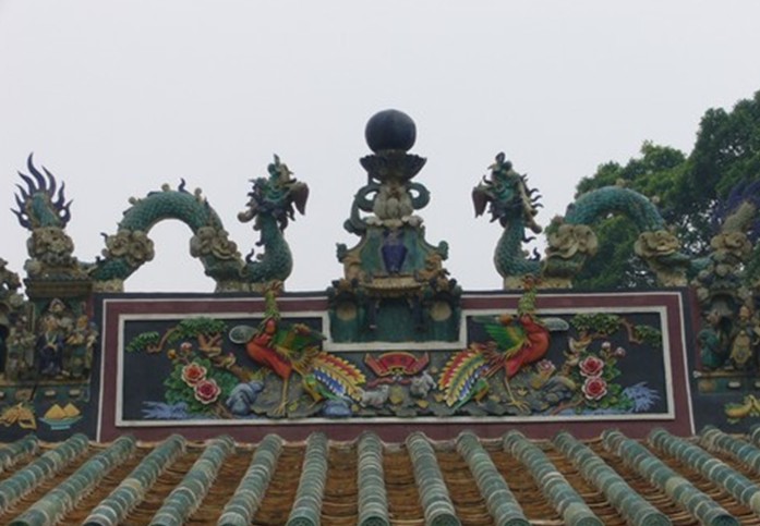 關(guān)帝廟位于廣東省鶴山市共和鎮(zhèn)大凹村。原廟已于100多年前圮廢,現(xiàn)存為光緒二十二年(1896)在原址上重建的。1948年修葺過一次。廟由山門、正殿、廂房組成,面積280平方米。營造手法與佛山祖廟相似,正殿屋頂為綠色琉璃瓦,屋脊以陶塑圖像裝飾,屋煞為光緒年間石灣名工燒制之二龍戲珠。