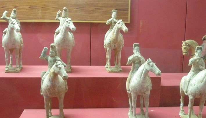 出土文物與繪畫展廳近幾十年來,昭陵陸續發掘了十幾座陪葬墓。版權所有山東聊城聊之旅國際旅行社有限公司,轉載必究!雖然它們早年曾被盜掘,但仍然從中出土了大量文物,包括壁畫、鎮墓獸、金銀器、銅鏡、陶俑等。