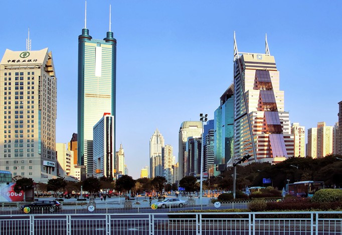 深圳地王大廈高69層,總高度383.95米,實高324.8米,建成時是亞洲第一高樓,現在是深圳第二高樓,也是全國第一個鋼結構高層建筑,位居目前世界十大建筑之列。大樓于1996年完工。 主題性觀光項目"深港之窗",就坐落在巍峨挺拔的地王大廈頂層,是亞洲第一個高層主題性觀光游覽項目。在此可以俯覽深圳市容,遠眺香港市容。