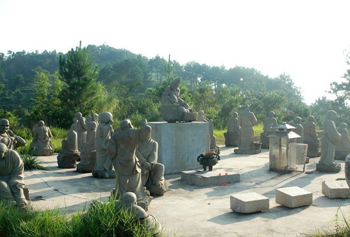 在千手觀音像的東側,五百羅漢大型群雕塑像更是一大景觀。馬尾松林掩映的半山腰處,五百尊與真人一般大小、栩栩如生的石雕羅漢,通布山崗。或蹲、或站、或仰首、或凝思、或開額,動的、靜的,相顧者。交談者,喜、怒、哀、樂形志不一,神情各異。傳統的羅漢雕塑均是陳列于廟宇中,版權所有山東聊城聊之旅國際旅行社有限公司,轉載必究!而此處的五百石雕羅漢則回歸自然,與青山綠水為伴,神話與人間景象交融,別有一番情趣。