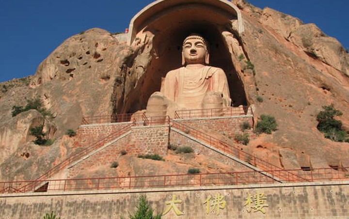 最為引人注目的,是須彌山入口處高達20.6米的彌勒大座佛。它高坐于唐代大中三年(849年)開鑿的一個馬蹄形石窟內(nèi),身披袈裟,頭流螺髻;臉如滿月,雙耳垂肩,神情莊重,十分壯觀。這座大佛比云崗石窟中最大的十九窟坐佛和龍門石窟的奉先寺盧舍那佛還高,是全國最大的造像之一。走近觀察,只見那佛高大魁梧,足有五六層樓高,耳朵有兩人高,眼窩直徑1米多,佛雖大,但雕刻卻十分的精致。專家說,這完全是一塊完整的罕見巨石雕琢出來的,充分顯示了中國古代工匠的高超技藝和雄偉氣魄。唐代統(tǒng)治者提倡佛教,武則天曾下令全國各州建大佛寺,造大佛像。有學者推測,這等大佛可能是在武則天掀起的崇拜佛的浪潮中建造的。站在大佛的腳下,眼前似有云霧繚繞,耳旁隱聽山泉叮咚,山石霧松組成大西北黃土高原上獨特的山水畫卷