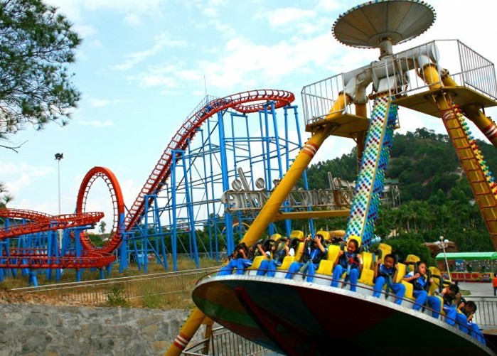 鳥屋漂流、過山車、東莞最大的動物園、驚險歷奇、廣東第一大100米龍宮、大擺錘、摩天環車、颶風飛椅、神州飛碟、豪華無天網碰碰車、豪華轉馬、太空漫步、廣東最大的哥倫布活鬼船、射箭場、炮兵基地、海盜船、激戰鯊魚島每個項目限玩一次以及景區各景點免費觀光。