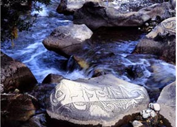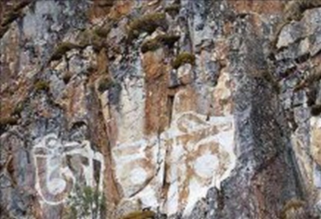 勒巴溝巖畫位于玉樹州境內(nèi)的通天河畔。沿著通天河畔的一條山徑來(lái)到這里,會(huì)使你同時(shí)產(chǎn)生兩種截然不同的情緒體驗(yàn):通天河的喧囂、壯闊和勒巴溝巖畫的靜謐、神圣。勒巴溝巖畫面江而鑿,處于勒巴溝溝口。勒巴溝內(nèi)蓊郁的草木,也難以掩蓋住由巖畫和不可勝數(shù)、遍布溝內(nèi)的嘛呢石刻散發(fā)出來(lái)的神秘氣氛。
