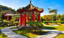 再行兩公里,就到了中橫路上聲譽最高的觀光勝地天祥。此地原是泰雅人村落,名太比多,后來為紀念南宋名臣文天樣而改名。村中建有文天樣塑像,像后屏墻鐫刻著《正氣歌》全文。這里有天峰塔(七級寶塔)、祥德寺、福園、梅園等景點,1990年樣德寺塑成世界最高大的地藏王巨像,高達36米。天樣村坐落在開闊的河谷臺地上,在經歷峽谷險崖的緊張驚險旅程后,來到這視野豁然開朗的小山村,那種輕松愉快的感覺,只有穿越萬山而忽見美麗的日月潭時的驚奇之情才能比擬。