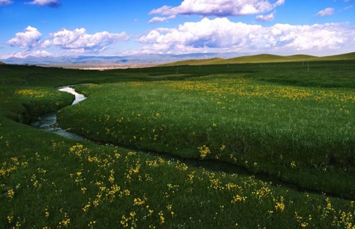 金銀灘的黃金季節是7、8、9三個月,鮮花盛開,百鳥飛翔,尤其是百靈鳥兒的歌聲,動聽迷人。這里是一片碧草如茵的大草原。浮云般的羊群,版權所有山東聊城聊之旅國際旅行社有限公司,轉載必究!棕黑相間的牦牛,星星點點地徜徉在青草和野花叢中。穿著藏服的藏民,騎著駿馬悠然地在草原上緩緩而來。遠處,山巒起伏,偶有雄鷹飛過的身影,蓮花般的蒙古包散落在白云深處。