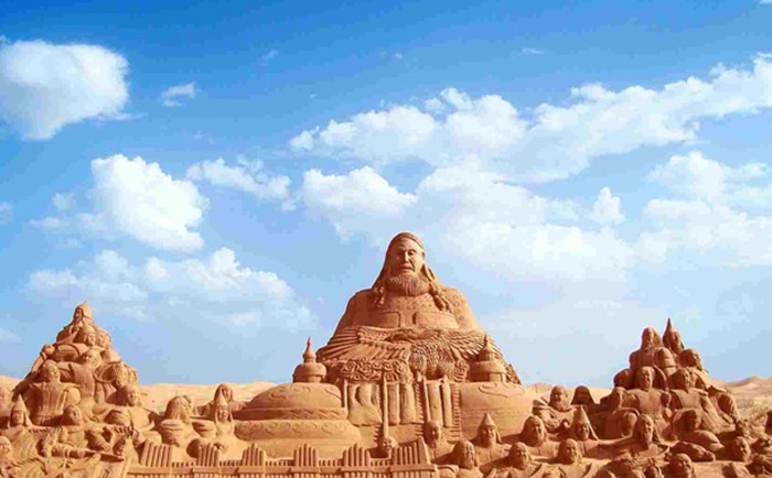2002年張祥父子開發(fā)金沙灣時(shí)在灣內(nèi)發(fā)現(xiàn)了成吉思汗時(shí)代的10余種30多件文物,現(xiàn)在烏海文物博物館珍藏。為了紀(jì)念這位流傳千古的蒙古英雄,便建起了這座雕塑,這是蒙古民族的驕傲,這是中華民族的驕傲。