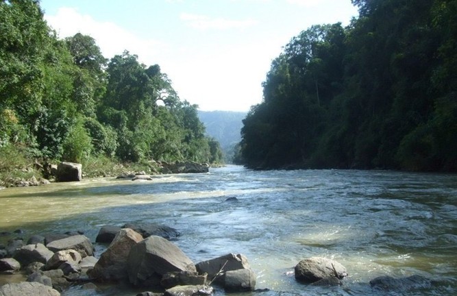 檳榔江 古稱海巴江,屬大盈江右支流。源于騰沖縣古永尖高山南側(cè),入境后,南向流至盞西鄉(xiāng)勐乃寨前與支那河交匯,縱貫盞西壩,接納勐龍、小關(guān)、邦別、芒牙等河,于芒章鄉(xiāng)芒章村人谷,流至新城鄉(xiāng)接納南當(dāng)河人盈江壩與南底河交匯人大盈江。
