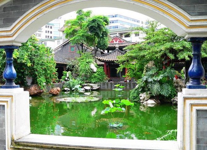 園內有大量裝飾性和欣賞性的陶瓷、灰塑、木雕、玻璃。園內妙聯佳句俯仰可拾,名人雅士音韻尚存,藝術精品比比皆是,令人流連忘返。園林藝術處理頗具匠心。園內疊石假山,曲水流觴,曲徑回廊,景趣盎然。銀杏千秋,百齡龍眼,玉棠春瑞,沙柳飄揚。閑步曲橋喜看金鯉碧波嬉戲;徐行花徑,好賞綠樹時花撲面。時而庭園內傳出裊裊弦歌,聽一粵曲,令人心清耳悅,如醉如癡。園內保存的一套清朝乾隆年間評定的“羊城八景”,就是一套僅存于世的清代舊羊城八景套色雕刻玻璃珍品,已被初步鑒定為國家一級保護文物。