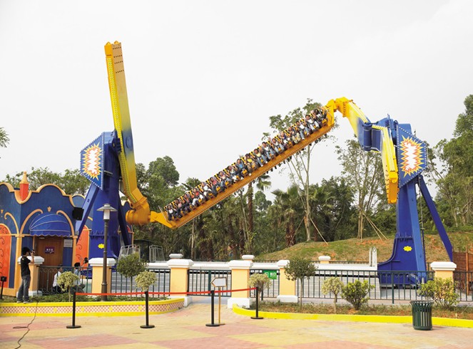 動(dòng)感地帶、彩虹灣、歷險(xiǎn)天地等主題區(qū),匯聚了當(dāng)今世界最大型、最刺激,科技含量最高的垂直過(guò)山車、十環(huán)過(guò)山車、摩托過(guò)山車、U型滑板、超級(jí)大擺錘、超級(jí)水戰(zhàn)六大頂尖游樂設(shè)施和四維影院、國(guó)際特級(jí)劇場(chǎng)兩大世界頂尖的精彩表演。