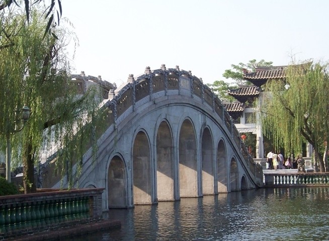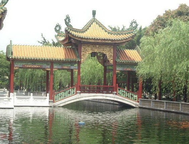 番禺寶墨園內,綠意盎然,水景可謂一絕。荔景灣、清平湖、寶墨湖與千米長河貫通合抱,水清如鏡,涓流不息,另有30多座石橋,橫跨旖旎河湖之上。若駕畫舫輕舟,仿佛置身于蓬萊仙島之中。湖面上,青水瀾瀾;湖周圍,綠柳侵煙;錦鯉千千紅浪涌,楊柳依依惹人憐。此外,紫竹園里的紫竹溪,還專供小孩玩水觀魚,更是兒童的歡樂天地。