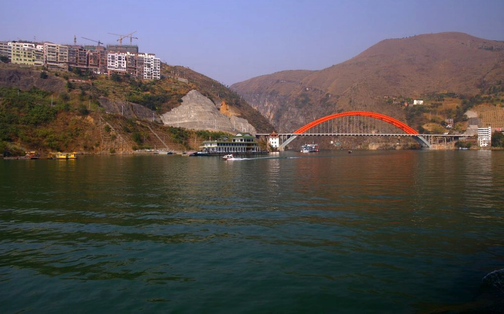 小三峽是針對長江的大三峽而言的,它位于重慶巫山縣境內。長江在進入巫峽時,有一條名為大寧河的支流流入,形成一個比較寬敞的江面。巫山縣城就處在大寧河流入長江的入口處,是一座搬遷后新建的小城。從下面望去,不大的城區依山傍江,錯落有致。導游介紹說,新城是廣東援建的,主要街道就命名為廣州街。
