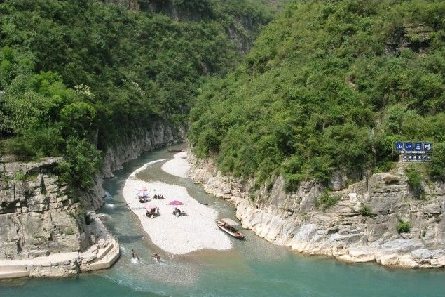 小小三峽內既能乘柳葉形小木船,纖拉桿撐,擦著河底卵石迎著激浪緩緩而行,飽覽兩岸秀美風光,也可以乘坐橡皮艇,揮動三尺銀漿,把握航向、順流而下,可盡情領略水花飛濺、有驚無險的漂流。