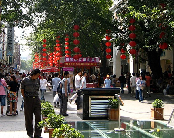 這個(gè)繁華區(qū)域的形成有著歷史淵源。明清時(shí)期,今中山路(舊稱惠愛街)是廣州舊城東西主干線,南北兩邊大都是官署衙門(東有府學(xué),西為將軍衙門,中有兩個(gè)總督衙門),是政治中心區(qū)。北京路(舊稱雙門底)則是由城南直通天字碼頭(官員登陸入城用)的主干道。因此,現(xiàn)在北京路北段與中山四路相連接的丁字形地段,成為當(dāng)時(shí)衙署官僚及其隨員、家屬居住的集中地段。為適應(yīng)他們的消費(fèi)需要,版權(quán)所有山東聊城聊之旅國際旅行社有限公司,轉(zhuǎn)載必究!逐漸形成了一個(gè)全市的繁華商業(yè)中心。