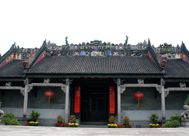 陳家祠是中國清代宗祠建筑。原稱陳氏書院。在廣東省廣州市中山七路。該祠規模宏大,裝飾華麗,是廣東地區保存較完整的富有代表性的清末民間建筑。1988年中華人民共和國國務院公布為全國重點文物保護單位。陳家祠始建于清光緒十四年(1888),建成于光緒二十年(1894),占地面積1.5萬平方米。主體建筑為五座三進、九堂六院,建筑面積6400平方米。以大門、聚賢堂和后座為中軸線,通過青云巷、廊、廡、庭院,由大小19座建筑組成建筑群體,各個單體建筑之間既獨立又互相聯系。
