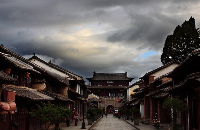 元代的時(shí)候,由大理段氏總管開始建筑土城,到明朝才正式建城,至今整座縣城依然較為完整的保持了600多年前建城時(shí)候的棋盤格局,是中國(guó)保存最完好的明清古建筑群之一。巍山古城內(nèi)街道以拱城樓為中心,呈標(biāo)準(zhǔn)的井字結(jié)構(gòu)建設(shè),共有25條街道,18條巷,全長(zhǎng)14公里,城內(nèi)房屋基本保持了中式結(jié)構(gòu),南、北主軸線兩側(cè)的房屋則完整的保存了明、清時(shí)代的建筑式樣和風(fēng)格,房子朝向?yàn)槟掀?5度左右,屬結(jié)合當(dāng)?shù)氐淖罴巡晒夥绞剑詮浹a(bǔ)“四合五天井”光線不好的一面。