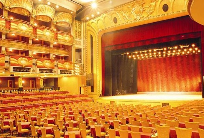 舞臺配置的全方位立體多變舞臺,結(jié)局新穎、獨(dú)特,隨意組合變化無窮,在聲、光、電、機(jī)械等方面全部采用了當(dāng)代最先進(jìn)的設(shè)備配合,讓導(dǎo)演和演員可以淋漓盡致地發(fā)揮,也讓親臨歌劇院的賓客陶醉在音樂歌舞的藝術(shù)享受中去。