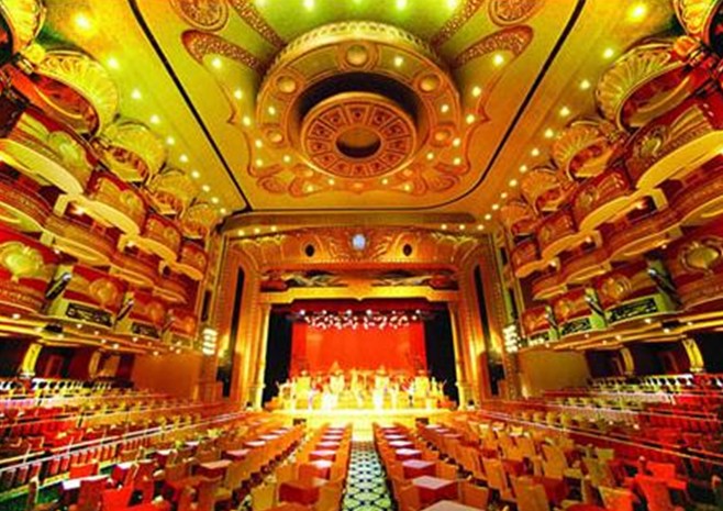 麗江明珠歌劇院與麗江明珠酒店比肩而立,獨(dú)特的"白宮"式建筑造型更體現(xiàn)出豪華氣派,其金碧輝煌的裝修和專業(yè)的設(shè)計(jì)加上各項(xiàng)高科技設(shè)備,成為中國目前首屈一指的現(xiàn)代化多功能歌劇院。設(shè)計(jì)豪華劇院的大堂,盡顯劇院高雅豪華氣派。