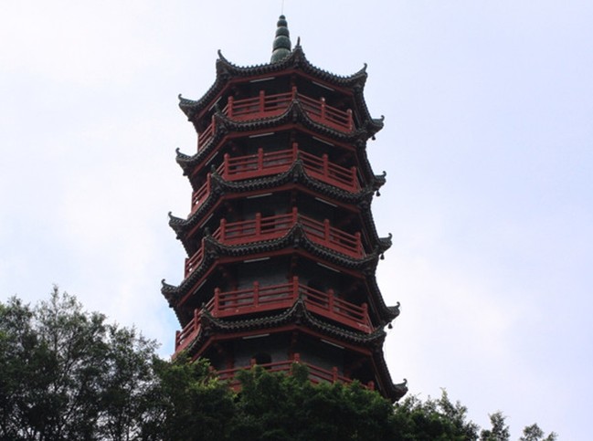 嶺塔處于南沙天后宮的最后方,是為紀念海上女神林默而建,塔高45米、共8層。之所以是8層(雙數),與其他塔為單數不同,是因為民間傳說中有一條不成文的規定:男神仙的代碼是單數,女神仙的代碼是雙數。因此天后宮里,無論是臺階、瓦楞還是對聯(上聯或下聯)字數,都是呈雙數的。