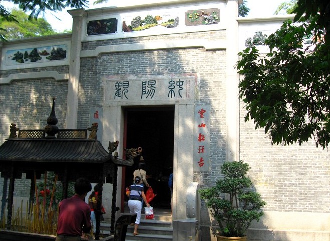 著名名勝古跡。位于珠江南岸新港路五鳳村(宋時(shí)稱萬松崗)。清道光年間道士李名徹(道號青來)見此崗“山環(huán)水曲,松石清奇”,遂取名漱珠崗.崗上有李氏募建的純陽觀,成于道光六年(1826),以觀中供奉純陽真君得名。觀傍山構(gòu)筑,布局謹(jǐn)嚴(yán),簡樸古雅。觀后有朝斗臺(tái),用花崗石砌筑而成,乃李名徹晚年為觀測天象而筑,是廣州地區(qū)僅存的古代觀象臺(tái)。