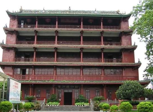 鎮海樓坐落在越秀山小蟠龍岡上。該樓又名“望海樓”,因當時珠海河道甚寬,故將“望江”變為“望海”。又因樓高5層,故又俗稱“五層樓”。樓前碑廊有歷代碑刻,右側陳列有12門古炮。