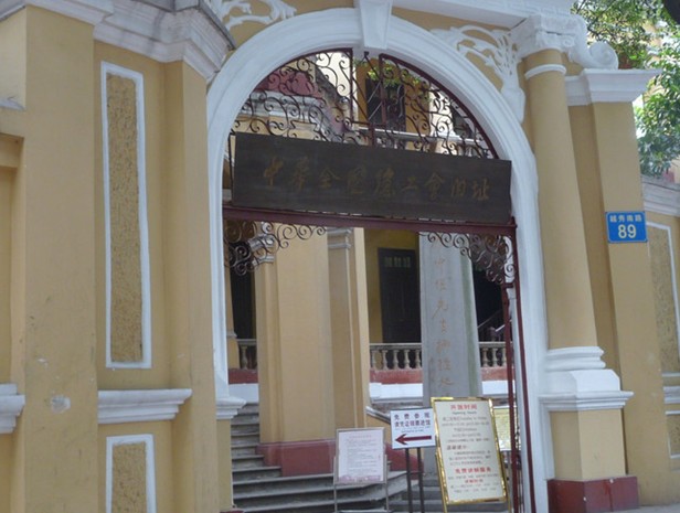 中華全國總工會舊址是中華全國總工會成立后的第一個總部所在地。在越秀南路93號。原為惠州會館,1924年為國民黨中央工人總部,1925年中華全國總工會遷此。 1925年5月7日,在中國共產(chǎn)黨的領(lǐng)導(dǎo)下,第二次全國勞動大會在廣州召開,決定成立中華全國總工會,選舉林偉民、劉少奇為正副委員長,蘇兆征、鄧中夏、李立三、李森等為執(zhí)行委員。全總成立后,此處成為大革命時期領(lǐng)導(dǎo)全國工人運動的中心。1927年1月,全總北遷漢口,這里改為全總駐廣州辦事處,4月被封閉。舊址為三層樓房。一樓是廣州工代會禮堂和辦公室,二、三樓是全總禮堂和辦公室。1958年會址修繕復(fù)原,辟為紀念館。1926年在門前兩側(cè)修筑“工農(nóng)運動死難烈士紀念碑”和“廖仲愷先生犧牲處紀念碑”。