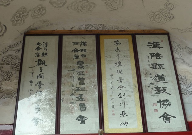 循山而上,廟依山崖,飛檐層疊。沿樵夫小徑通往山腰,只見一片翠綠,嬌艷欲滴,環抱遍野山菊,相應成輝,妙趣天成。坐“陶然亭”小憩,細細體味著隱士陶淵明“采菊東籬下,悠然見南山”的怡然自得。亭壁“六龍馭穹蒼,文星射斗牛”的楹聯,激揚文字,豪情沖天,彰顯藏龍臥虎的磅礴氣勢。