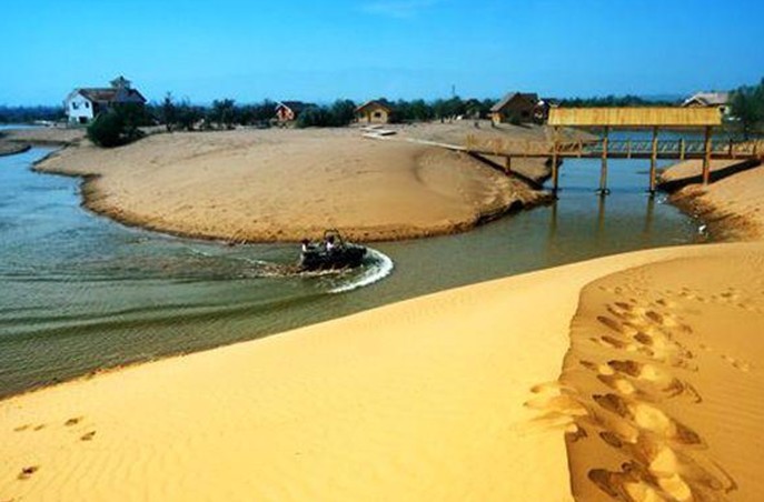 高墩湖因身邊聳立著幾個高大的古長城烽火臺而得名。旅游區位于騰格里沙漠南部邊緣,距市區8公里,集觀光、休閑、度假、娛樂為一體。旅游區占地1000多畝,其中湖泊水面400畝,沙漠濕地200多畝,建有大中型豪華蒙古包10座,打造各類游船10艘,開發了水上樂園、沙生動植物觀光、沙漠沖浪、打獵場等十幾個旅游項目。