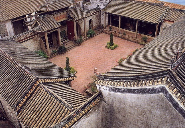 除了儀門外,還包括后面的丹墀(天井)、月臺和東兩邊的廡廊。天井由紅磚鋪成。月臺(又稱釣魚臺)依天井的北面而建,高出天井1米,原是族人在喜慶日子看戲的舞臺。其基石由一列15塊大理石構成,石上刻有“老龍教子”、“雙鳳牡丹”、“雙獅戲珠”、“犀牛望月”、“蒼松文理”及松、梅、竹、菊、牡丹等圖案,刀法渾樸自然、玲挑剔透,是元、明年間的古石雕,非常珍貴。月臺東西兩墻基中也各有五幅大小不等的鳥獸紅石刻,同樣神采非凡。東西廡廊各有4條石柱、8條木柱,共24條柱,這原是祭祀時供客人休息的地方,現為珍貴文物展覽室。站在月臺上,環顧四周,北面象賢堂和東西廡廊的60多條大柱,錯落有致,虛實相間,就如鋼琴的琴鍵,令人仿佛聽到一曲古典音樂,悠揚婉轉,跌宕起伏,心潮澎湃,仿佛置身藝術的海洋里。