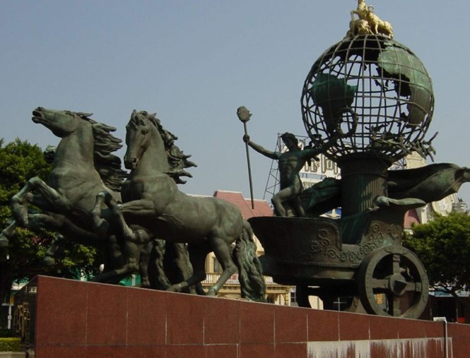 時(shí)代廣場可容納2.5萬人,四周環(huán)列四大文明古國的藝術(shù)雕塑造景和12位世界科技文化名人的銅像。中心舞臺可旋轉(zhuǎn)、升降變化,3個(gè)拱形方柱,充滿現(xiàn)實(shí)主義的建筑風(fēng)格。每當(dāng)夜幕降臨,這里將上演一臺由500名中外演員參演、氣勢壯觀的大型舞蹈《戰(zhàn)王與女神》或具有異國情調(diào)的《美國百老匯風(fēng)情---今夜狂歡》。其藝術(shù)燈光和艷麗的空中裝飾達(dá)3萬平方米,加之2500平方米的音樂噴泉和800平方米的水幕電影,形成了多姿多彩、奇幻無窮的舞臺背景。充滿浪漫色彩的巴黎歌劇院,設(shè)有750個(gè)座席,一臺以《五羊神女的夢幻》為主題的艷麗之舞,令游人如癡如醉。古希臘劇場的大馬戲、雜技和競技、斗雞斗羊表演,時(shí)而令人驚心動(dòng)魄,時(shí)而讓人捧腹大笑。英國劇場表演的歐洲各國的宮廷舞、爵士樂、輕歌劇,使游人領(lǐng)略到歐陸風(fēng)情及其藝術(shù)魅力。阿拉伯劇場以《天方夜譚》故事為主線創(chuàng)作的多種形式、多種類型的藝術(shù)表演,向游人展現(xiàn)了阿拉伯文化特色和特有的風(fēng)土人情。日本劇場的柔道、摔跤、武術(shù)和現(xiàn)代舞表演,則給人以耳目一新的感覺。