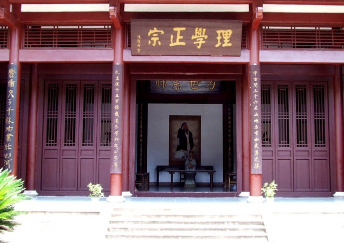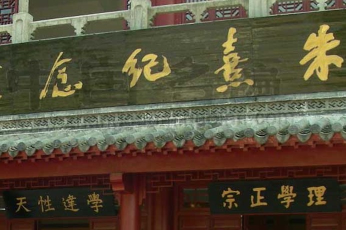 聯(lián)曰:“接伊洛之淵源,開(kāi)閩海之鄒魯”,聯(lián)文說(shuō)明朱熹的理學(xué)思想已成為我國(guó)哲學(xué)發(fā)展史上的一個(gè)承上啟下的重要階段。這副楹聯(lián)懸于大門(mén)顯得端莊典雅,醒目點(diǎn)題。大殿前有一副“致廣大而盡精微,極高明而道中庸”的對(duì)聯(lián),表述了朱熹的哲學(xué)體系博大精深和儒家人生處世的規(guī)范。