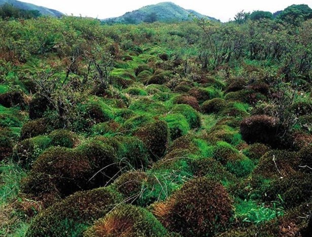 滕古田自然保護(hù)區(qū)還有許多別處難以見到的奇觀,如古樹的大板根現(xiàn)象,一棵三人才能合抱的古樹生出五支刀一樣的板根露出地面,幾個(gè)人坐在板根之間誰(shuí)也看不著誰(shuí),這就是亞熱帶森林特有的景觀。在這里,還能夠欣賞到亞熱帶地區(qū)罕見的成片紅皮糙果茶純林,樹干挺拔崔嵬,葉片寬大蔥郁,顯示出一種拙樸、雄壯的原始之美。在行至古田的山路上,還有一種長(zhǎng)在大石旁邊名叫“過(guò)崗龍”的藤,藤的頭部直徑有70多厘米,三支分藤匍匐攀沿于兩座山頭,總長(zhǎng)達(dá)400多米。古田保護(hù)區(qū)還有水流飛簾倒卷的水簾下瀑布、頭沉出水處的沉水河等頗有欣賞價(jià)值的自然景觀。