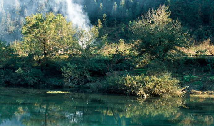 大山村有王村、李村和洪村三個村民組,其中王村所在的地方尤為奇特,他們倚山結(jié)廬,世代以種茶為生。村口一棵甜櫧,680年,蔥蘢如蓋。村子四面環(huán)山,像安臥在搖床里的嬰兒。東南面有一叢古樹,天然一處入風口,光線也通透,遠處層巒疊嶂,云霧常年繚繞,而西北面則有一個天然的出風口,我們先前感受到的暖流氣息,很可能就是從這個出口散出去的。