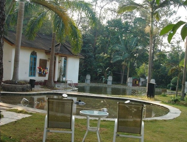 河東名人山莊的總統餐廳是一個標志性建筑物,采用原木、花崗巖和磚結構。里面有很多來自世界各地珍貴的古董和飾物,純屬莊主的私人收藏與好朋友贈送的。這里每天早晨8點至10點供應地道的農家早餐,有新鮮豆漿、白粥、米粉、番薯、芋頭、野菜、粽子、水庫小魚仔、恩平特色小點心、恩平禮粉。