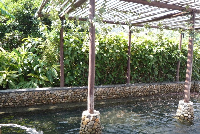 度假村四周群山起伏,層巒疊翠,風光秀麗,景色迷人,充滿大自然的野趣。度假村占地面積100多畝,地下熱源達5平方公里。露天泉涌100多處,月流量近10萬立方米,其中一個泉眼,每小時流量60立方米。該度假村的溫泉水溫最高達80度以上,可將雞蛋燙熟,所以在諸多泉池里有個湯雞蛋小池,讓你可以邊泡溫泉邊剝燙熟的雞蛋來吃。溫泉水用作健身理療治病,在我國有近千年的歷史。