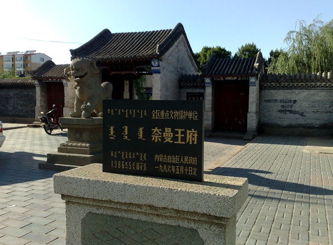 奈曼王府坐落于內蒙古自治區通遼市,始建于清同治二年(公元1863年),為全國重點文物保護單位。占地面積9997平方米,有房屋190余間,系臺榭回廊式四合建筑。原為奈曼部首領札薩克多羅達爾漢郡王的府邸,現已對公眾開放。整個建筑風格具有鮮明的蒙古民族特色,設計和布局反映了當時王公的尊嚴和嚴格的等級制度。