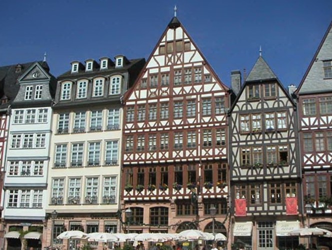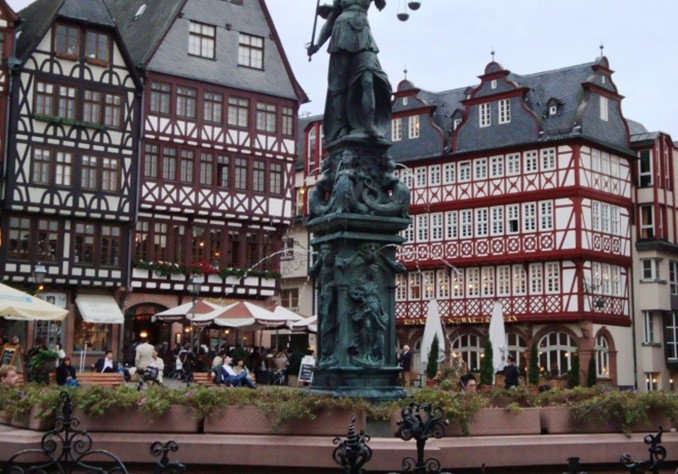 中世紀時期,羅馬廣場是整個法蘭克福的中心廣場。集市和商品交易會,以及政治性集會和法庭審判都在這里舉行。這個地方可能是由當時主宰了當地商界的意大利商人命名的。二戰中,圍繞著這個五角形廣場的桁架樓房遭到了徹底摧毀。二戰后不久,廣場就得以重建,而廣場東邊的那一排樓房,版權所有山東聊城聊之旅國際旅行社有限公司,轉載必究!即古諾斯安格(Grosser Engel),高爾德格萊夫(Goldener Greif),威爾德曼(Wilder Mann),克萊納大赫博格(Kleiner Dachsberg),以及古佑斯勞奔博格(Grosser Laubenberg),直到1980—1986年才得以重建,并且是采用了粉飾性極強的粹克百克風格。不久后,人們就發現了這些建筑物的缺憾之處:才幾年的時間,樓房就出現了很大的裂痕,必須加以修繕。廣場中央建于十六世紀的正義噴泉使人想起中世紀法庭審判的情形。