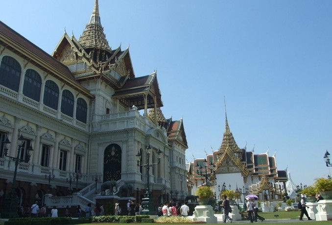 大皇宮(The Grand Palace)緊鄰湄南河,是曼谷中心內一處大規模古建筑群(計28座),總面積二十一萬八千四百平方米。大皇宮是仿照故都大城的舊皇宮建造的,經歷代君王不斷擴建,終于建成現在這座規模宏大的大皇宮建筑群。大皇宮是泰國諸多王宮之一,是歷代王宮保存最完美、規模最大、最有民族特色的王宮。曼谷王朝從拉瑪一世到拉瑪八世,均居于大皇宮內。1946年拉瑪八世在宮中被刺之后,拉瑪九世便搬至大皇宮東面新建的集拉達宮居住?,F在,大皇宮除了用于舉行加冕典禮、宮廷慶祝等儀式和活動外,平時對外開放,成為泰國著名的游覽場所。