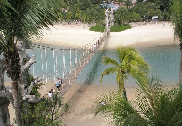 圣陶沙島通過一條堤道跨海大橋與新加坡大陸連為一個整體,游客前往可以乘坐纜車、游船和汽車三種交通工具,十公方便。島上遍布廳花異草,環(huán)境十分優(yōu)美。同時,由于島上擁有美麗的海灘、眾多展覽館以及各式各樣的娛樂設(shè)施,來觀光游覽者絡(luò)繹不絕。