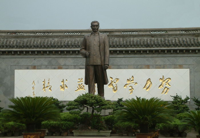 瞻仰大廳,即錫養(yǎng)堂。原為百歲堂周氏族人舉行祭祖、婚娶等重大禮儀活動的場所。“錫養(yǎng)堂”匾高掛門楣,廳內(nèi)矗立著身著戎裝的周恩來漢白玉雕像。廳內(nèi)柱上懸掛著“選賢與能講信修睦,體國經(jīng)野輔世長民”、“為國為民孺子牛,任勞任怨絕代尹”對聯(lián),高度概括了周恩來平凡而偉大的一生。