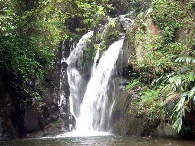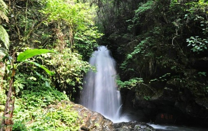 位于縣城西南13公里處的三水鎮(zhèn)大旭山,景區(qū)山高林深、溪水清冽、地勢(shì)起伏、瀑布成群,空氣特別清新。在大旭山,最大的享受當(dāng)然是觀瀑和玩瀑。沿著山徑悠然而上,首先映入眼簾的是“蕉石鳴琴”,蕉林成蔭,山石玲瓏,溪水迤邐,仿如幽雅琴聲。經(jīng)過木橋,能觀賞到白鶴巖瀑布、野蕉林瀑布、老龜潭瀑布、寶石岸瀑 布和藏金洞瀑布,每個(gè)瀑布因山形、地勢(shì)和水量各不相同,形成了風(fēng)采、趣味各異的景觀。